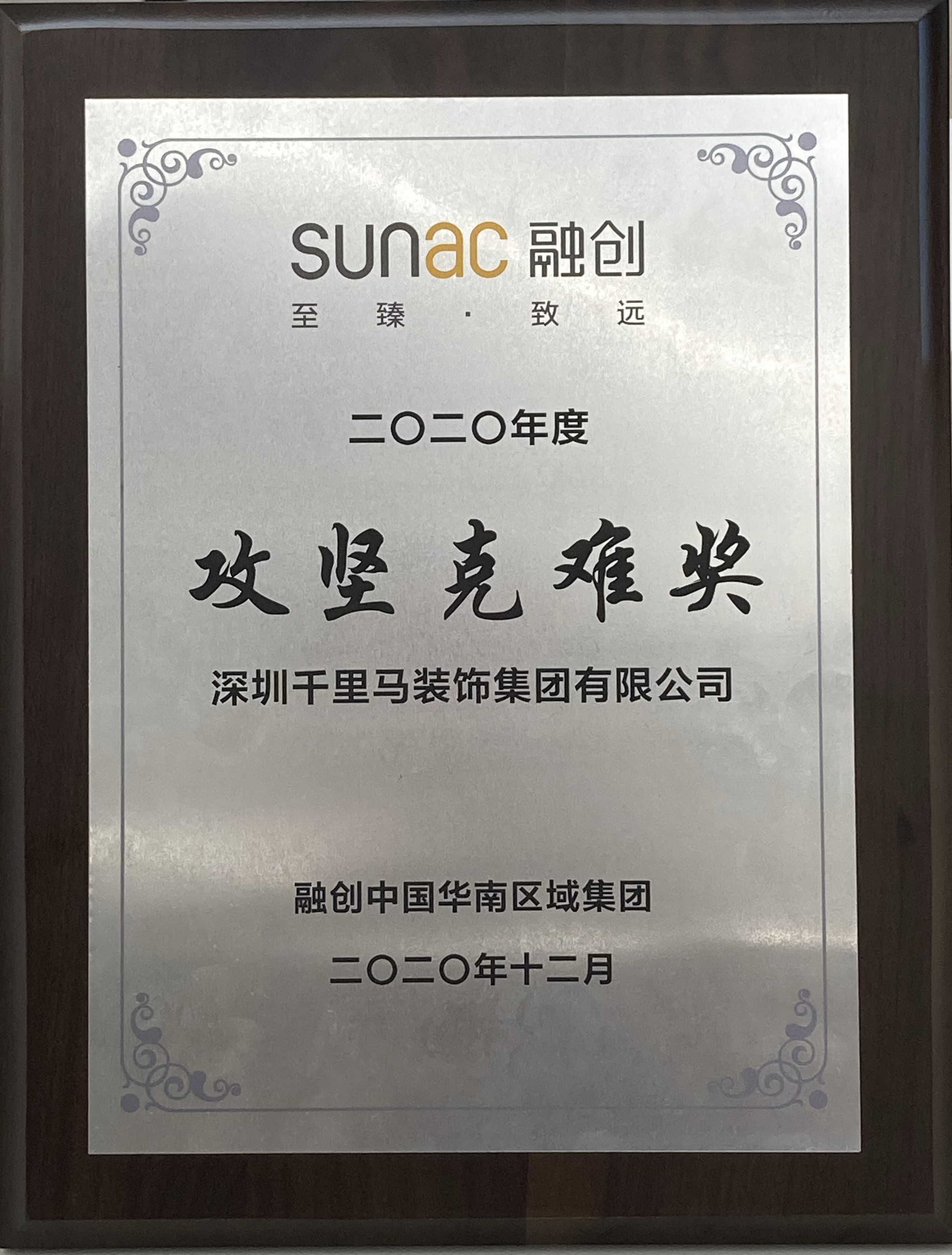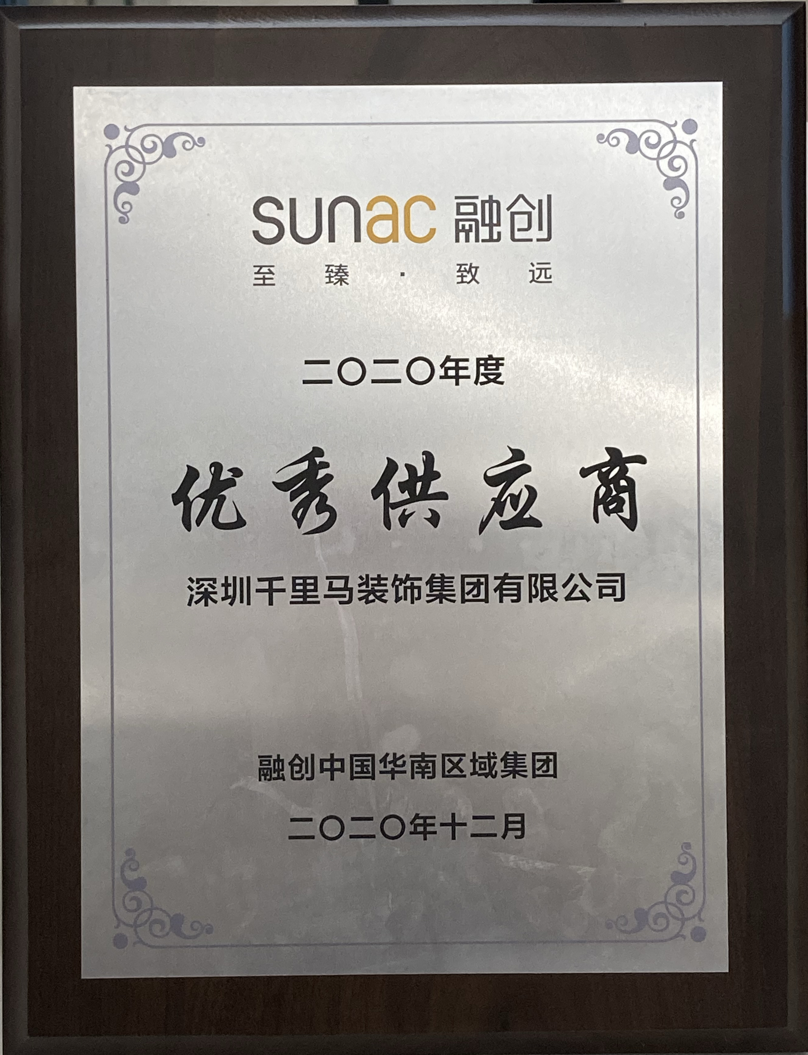 近日,深圳千里馬裝飾集團(tuán)再獲融創(chuàng)中國(guó)華南區(qū)域集團(tuán)頒發(fā)的“2020年度優(yōu)秀供應(yīng)商”稱號(hào),這是我司自2018年以來連續(xù)第三年獲得此項(xiàng)殊榮,此外,我司今年還同時(shí)獲得了集團(tuán)頒發(fā)的“2020年度攻堅(jiān)克難”獎(jiǎng)。