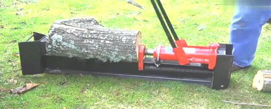 伐木作業(yè)時工人使用電鋸將整個的樹木分成一段一段的,但是要想再細(xì)分就比較麻煩了,斧頭很難劈開,繼續(xù)用電鋸也沒必要,這時我們可以選擇使用千斤頂進(jìn)行作業(yè)。如圖片所展示的,將木段固定在千斤頂上方處,然后人力反復(fù)操作手柄,千斤頂頂升起來,推動木頭不斷向前移動,固定處的前方所凸出的地方可以輕松的將木頭分割成兩半,如此多次重復(fù)操作木頭就可以順利的劈成多塊的,方便使用或者燃燒。