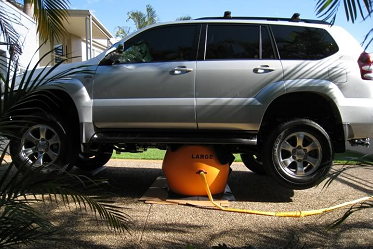 據了解,目前在自駕游愛好者中流行一種充氣式千斤頂,它是利用車輛的尾氣對氣包進行充氣,一般此類千斤頂的最大支撐重量在4噸左右,適合條件比較艱險的救援或者是越野車的自救和脫困。