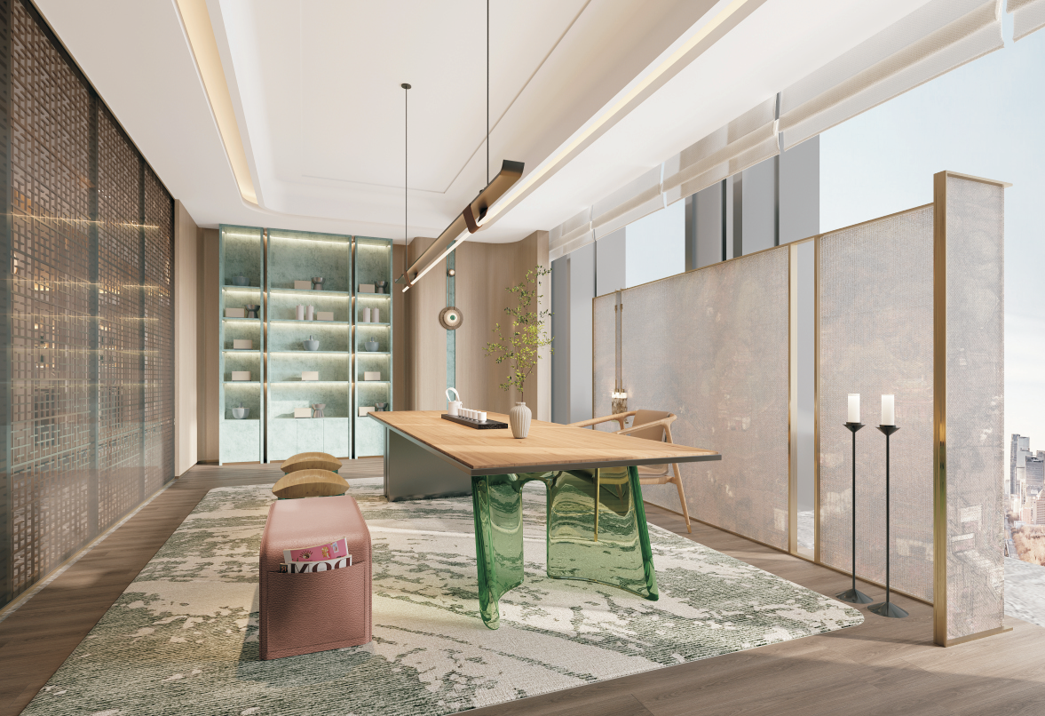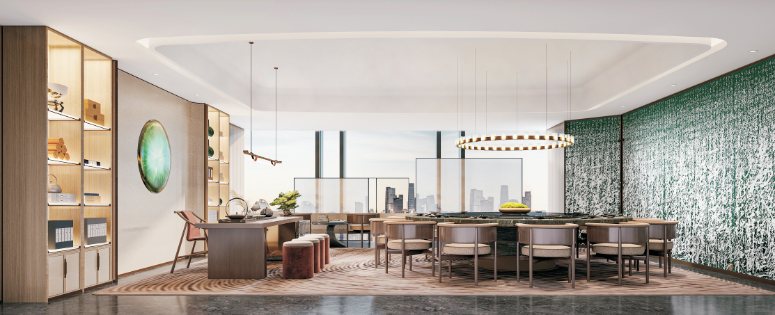 前海紫荊港灣會所的整體設計走新東方風格。本次的設計理念,是希望隱于鬧市,藝文養心,是都會中的桃花源,總體表達低調奢華和內斂雅致的設計風格,將現化風格和傳統元素相互融合,形成豐富的感觀體驗,為客戶帶來返璞歸真的全新感觀體驗!海派東方,演繹奢意東方之美!將柔和的線條滲透于各空間,讓水之意向以抽象的方式回歸空間,行走于墻面,流淌于天花,似靜似動。